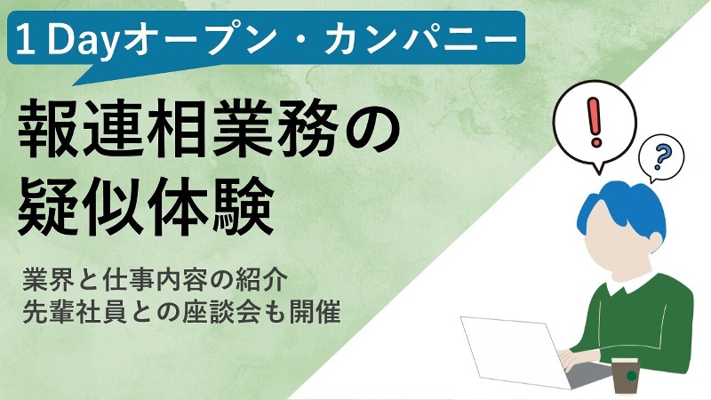 当社では、どの職種においてもコミュニケーションを大切にしています。報連相というと、「そんなの当たり前じゃないか」と思うかもしれませんが、実は新入社員が最初につまづく壁と言っても過言でありません。今回の体験を通じて現場で使うリアルな報連相を客観的に学び、社会人としての基礎スキルを学生のうちから磨くことができます。